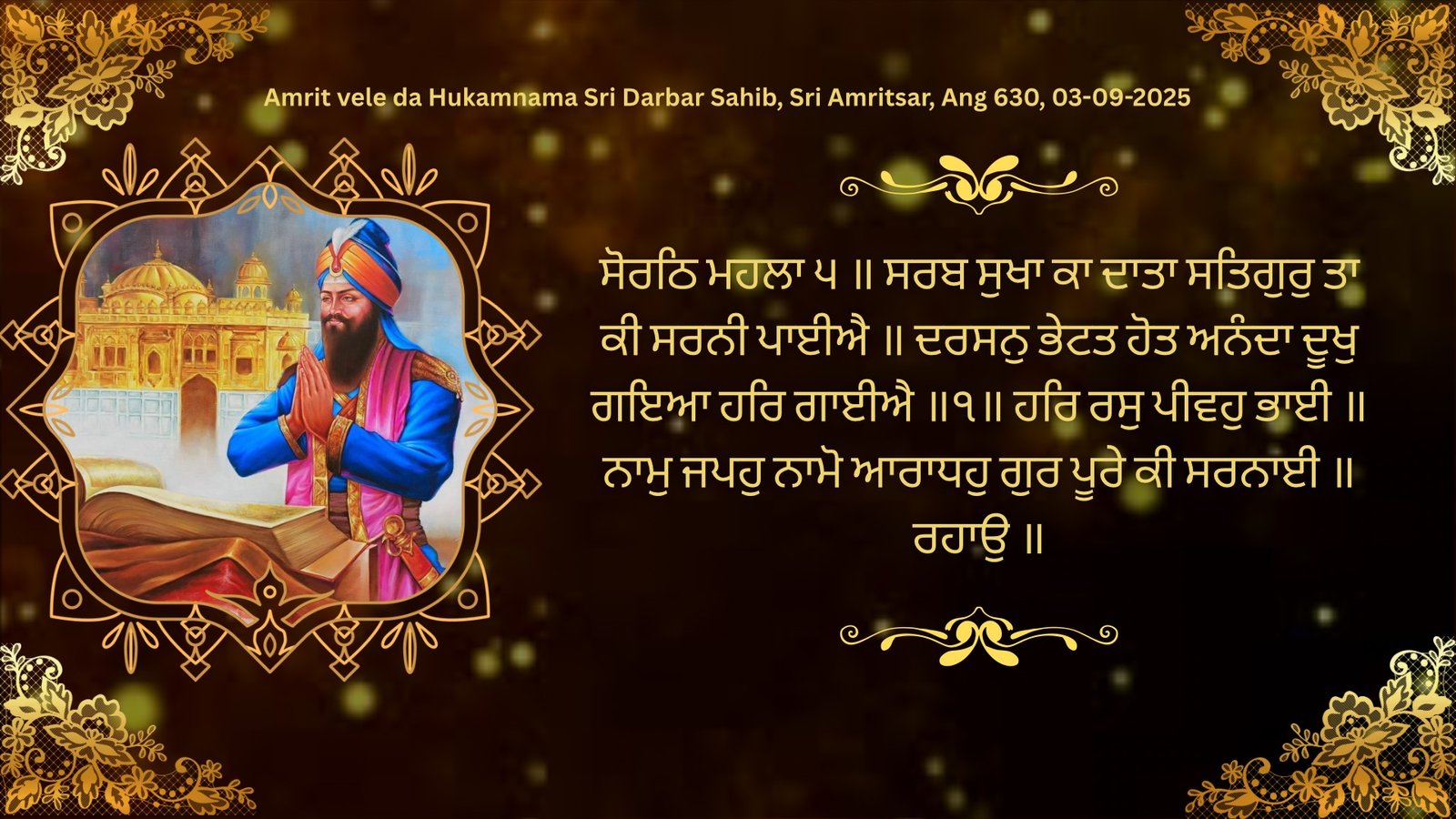 Amrit vele da Hukamnama Sri Darbar Sahib, Sri Amritsar, Ang 630, 03-09-2025