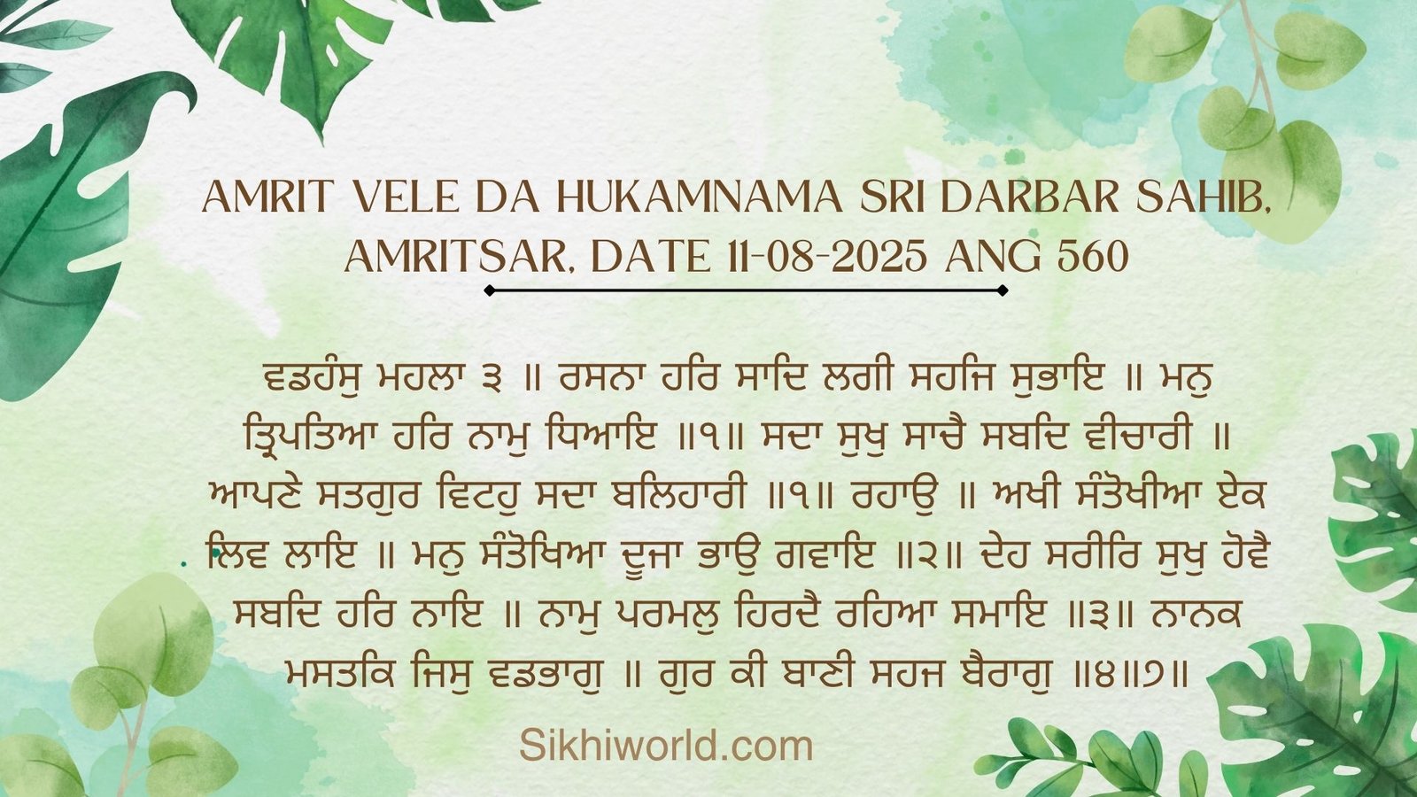 Amrit Wele Da Mukhwak Sachkhand Sri Harmandir Sahib AmritsarAng 560, 11-08-25