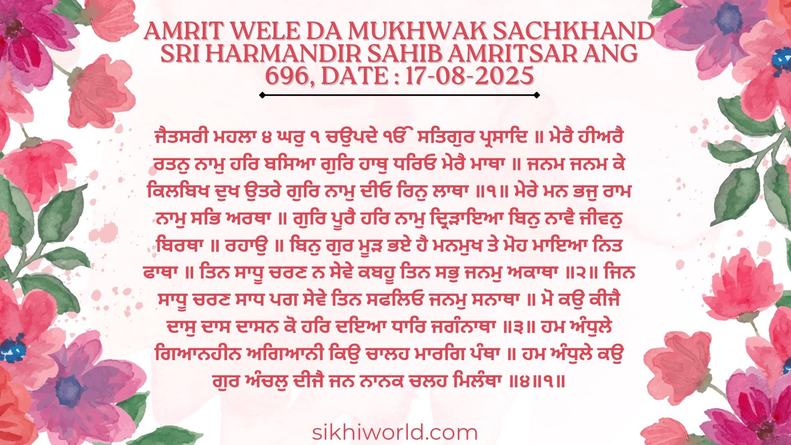 Amrit Wele Da Mukhwak Sachkhand Sri Harmandir Sahib Amritsar Ang 696, Date : 17-08-2025