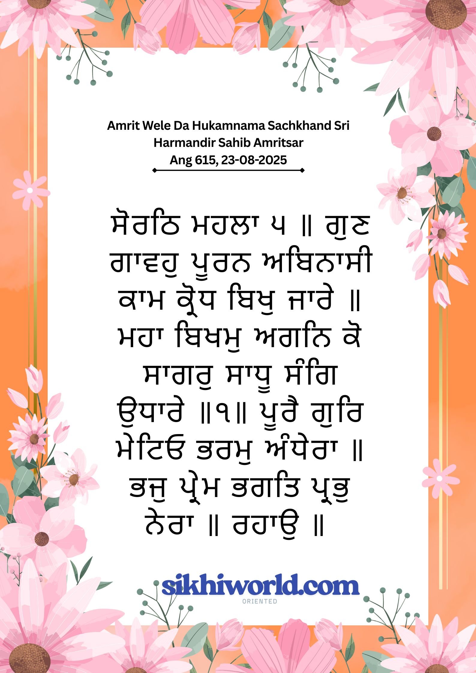 Amrit Vele Da Hukamnama Sri Darbar Sahib, Amritsar, Date 23-08-2025 Ang 615