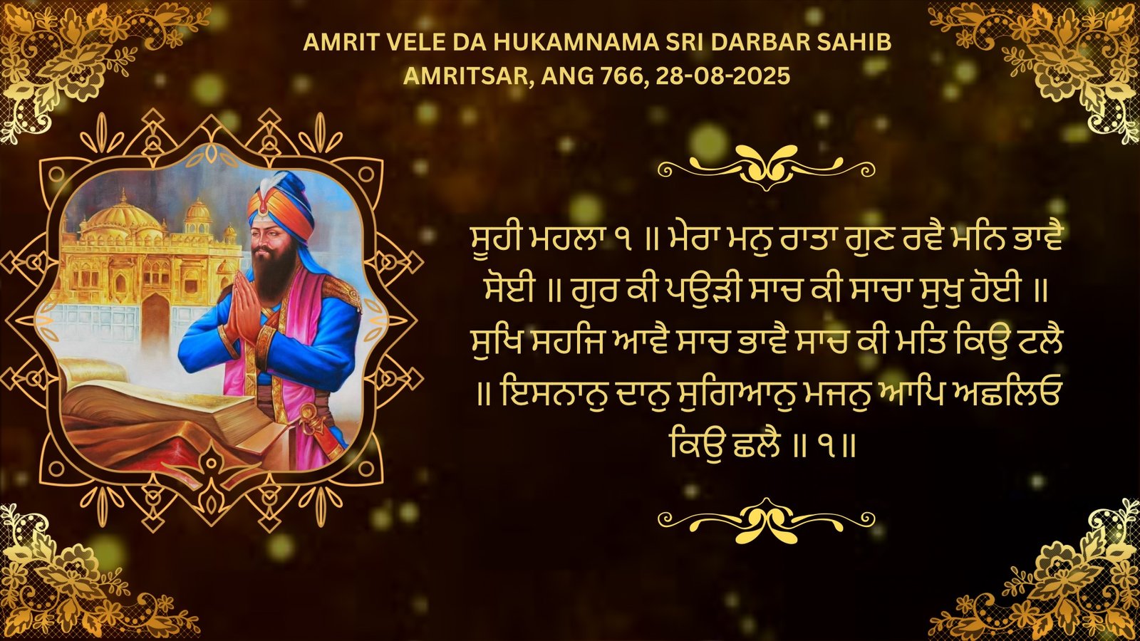 AMRIT VELE DA HUKAMNAMA SRI DARBAR SAHIB AMRITSAR, ANG 766, 28-08-2025
