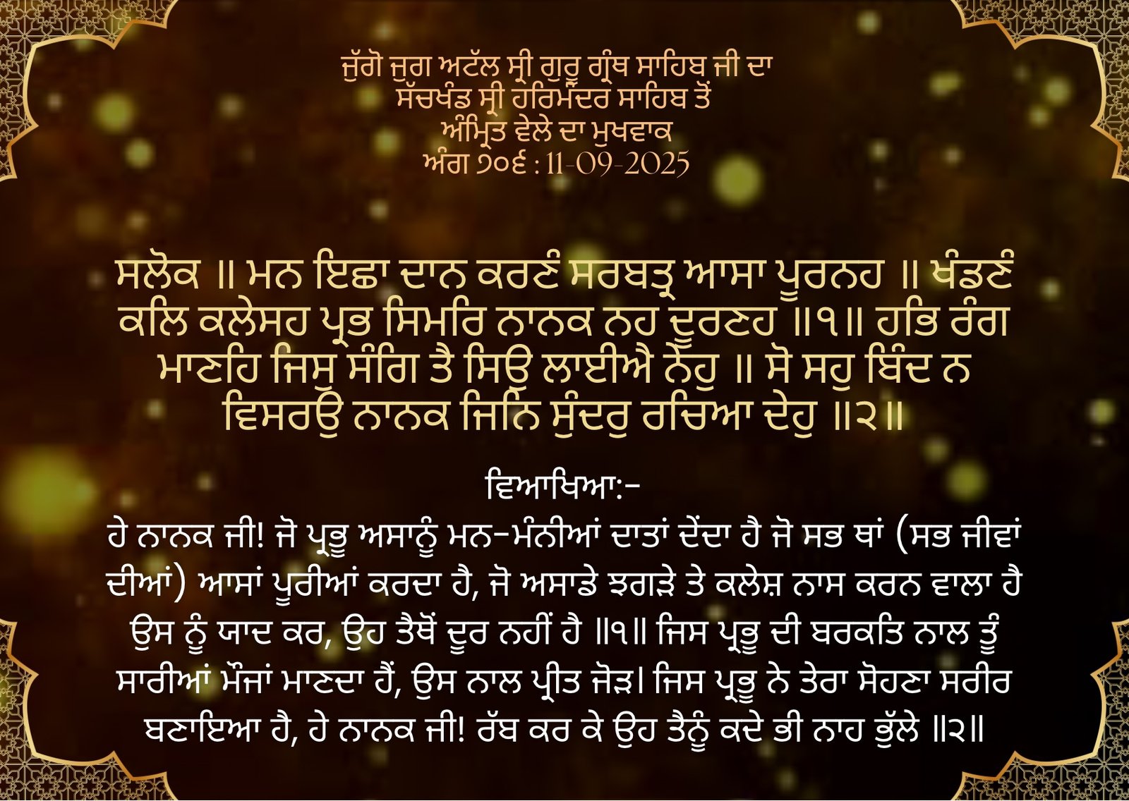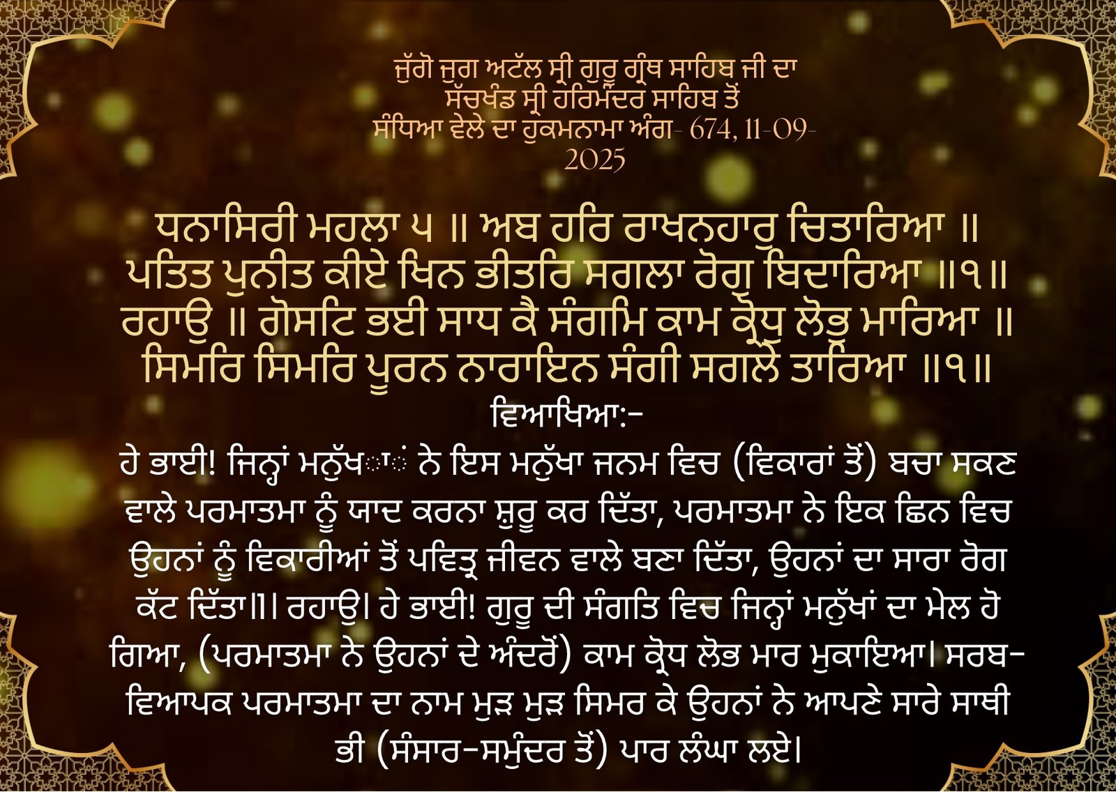 Sandhia Vele Da Hukamnama Sri Darbar Sahib, Amritsar, Date 15-09-2025 Ang 631