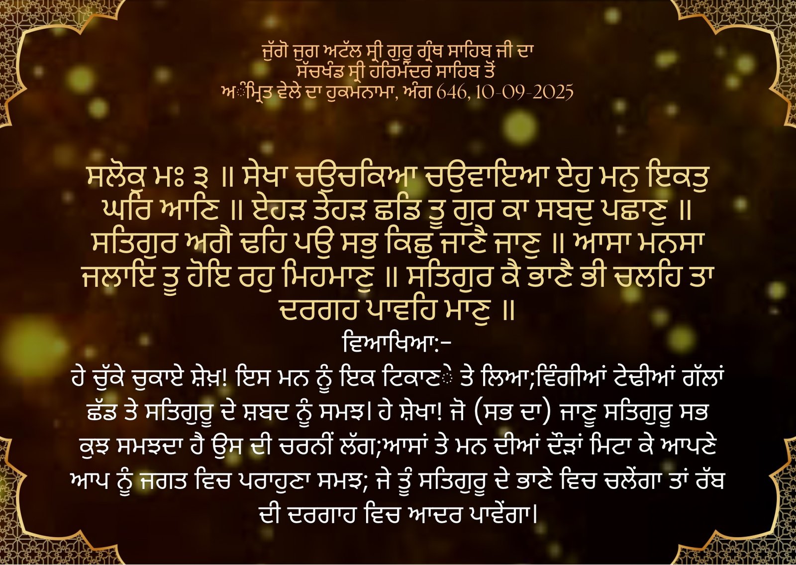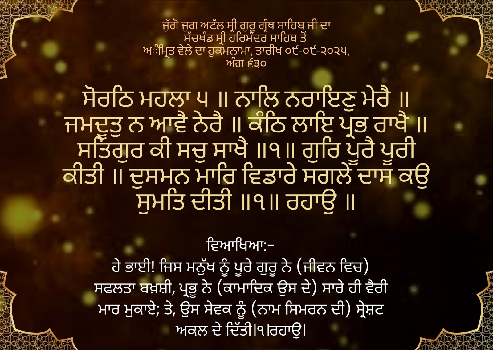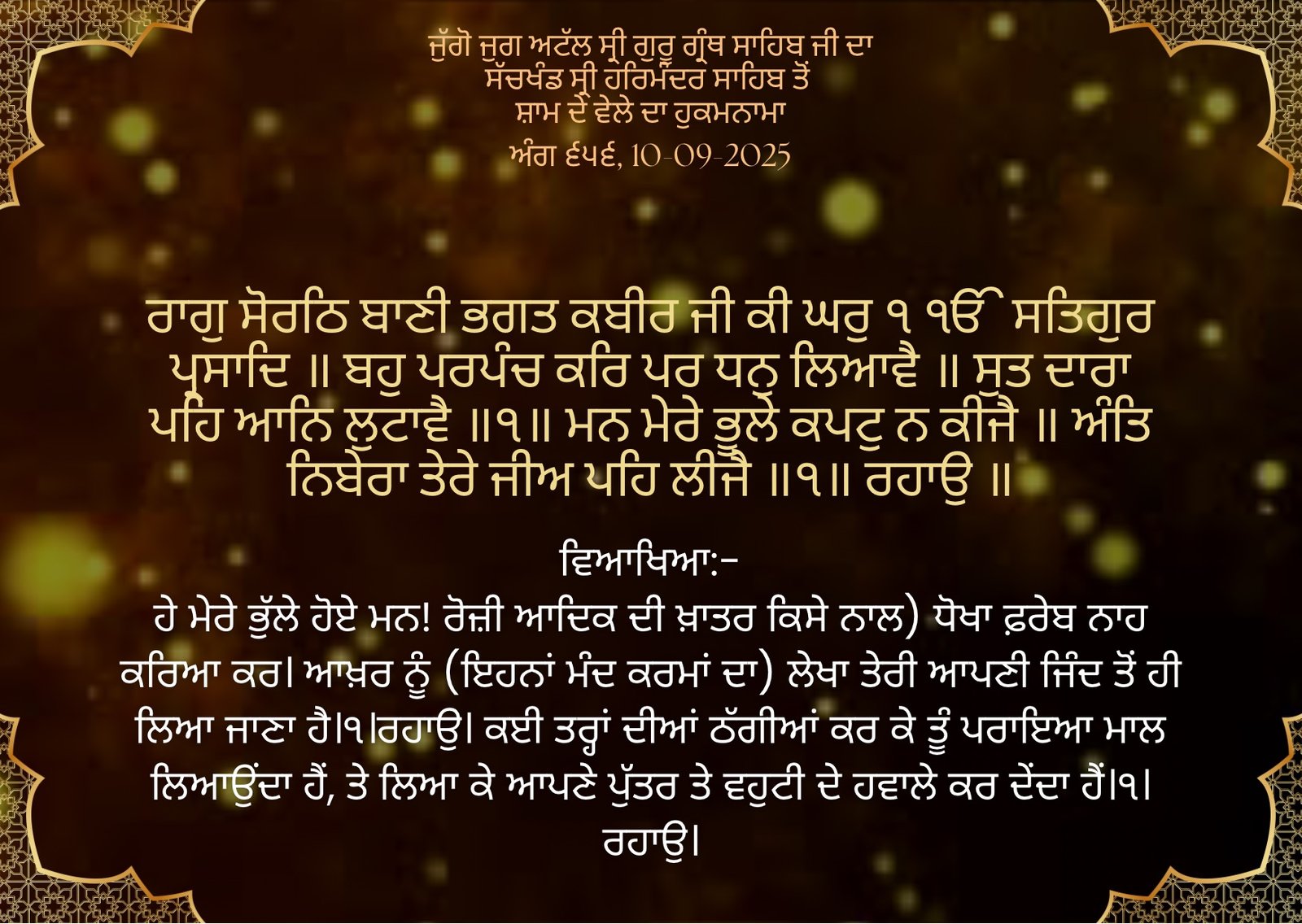 Sandhia Vele Da Hukamnama Sri Darbar Sahib, Amritsar, Date 12-09-2025 Ang 631