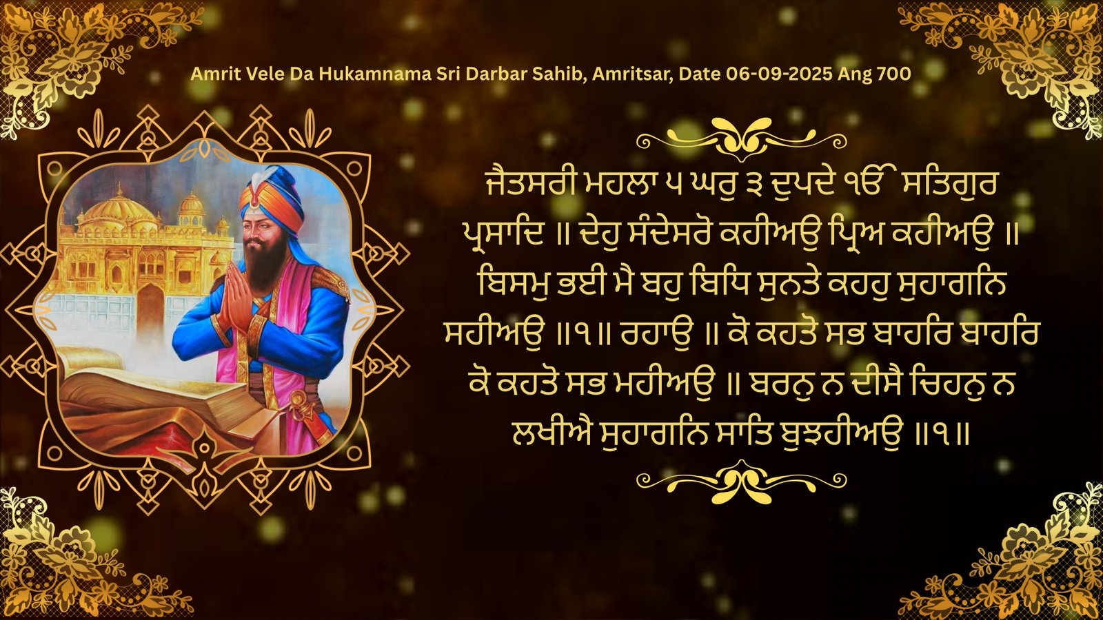 Amrit Vele Da Hukamnama Sri Darbar Sahib, Amritsar, Date 08-09-2025 Ang 694
